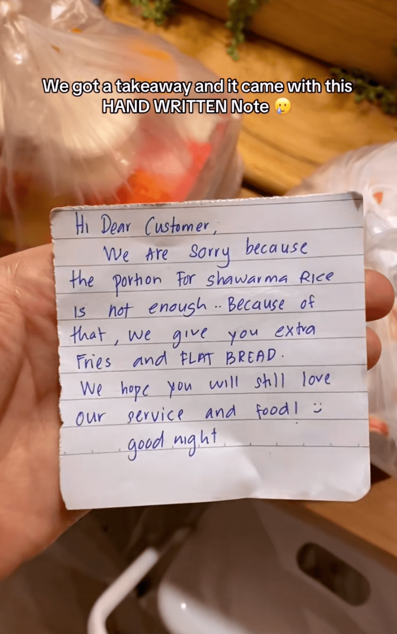 But, instead of being angry or “complaining”, this tourist was actually moved by a handwritten note tucked into the bag of food he received.